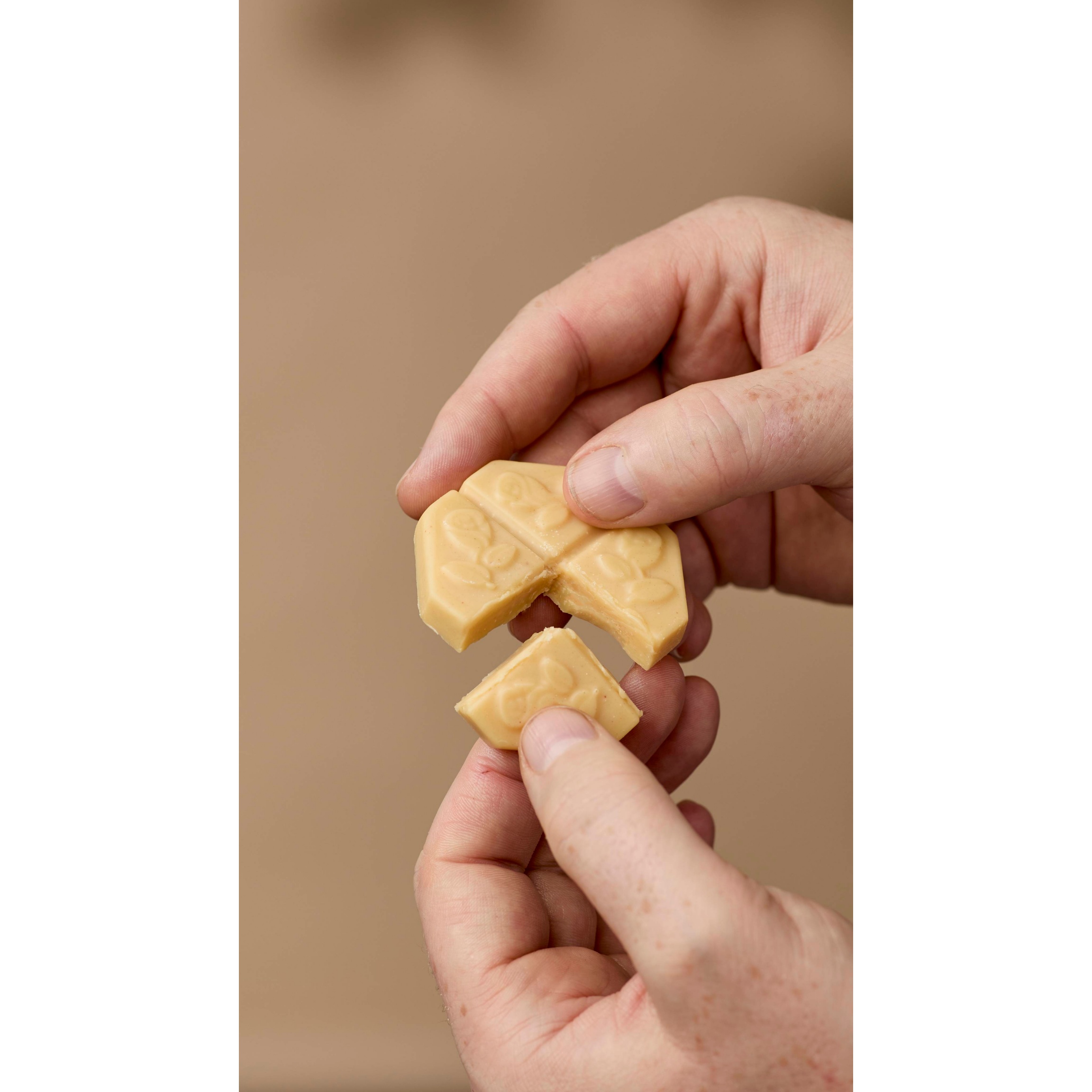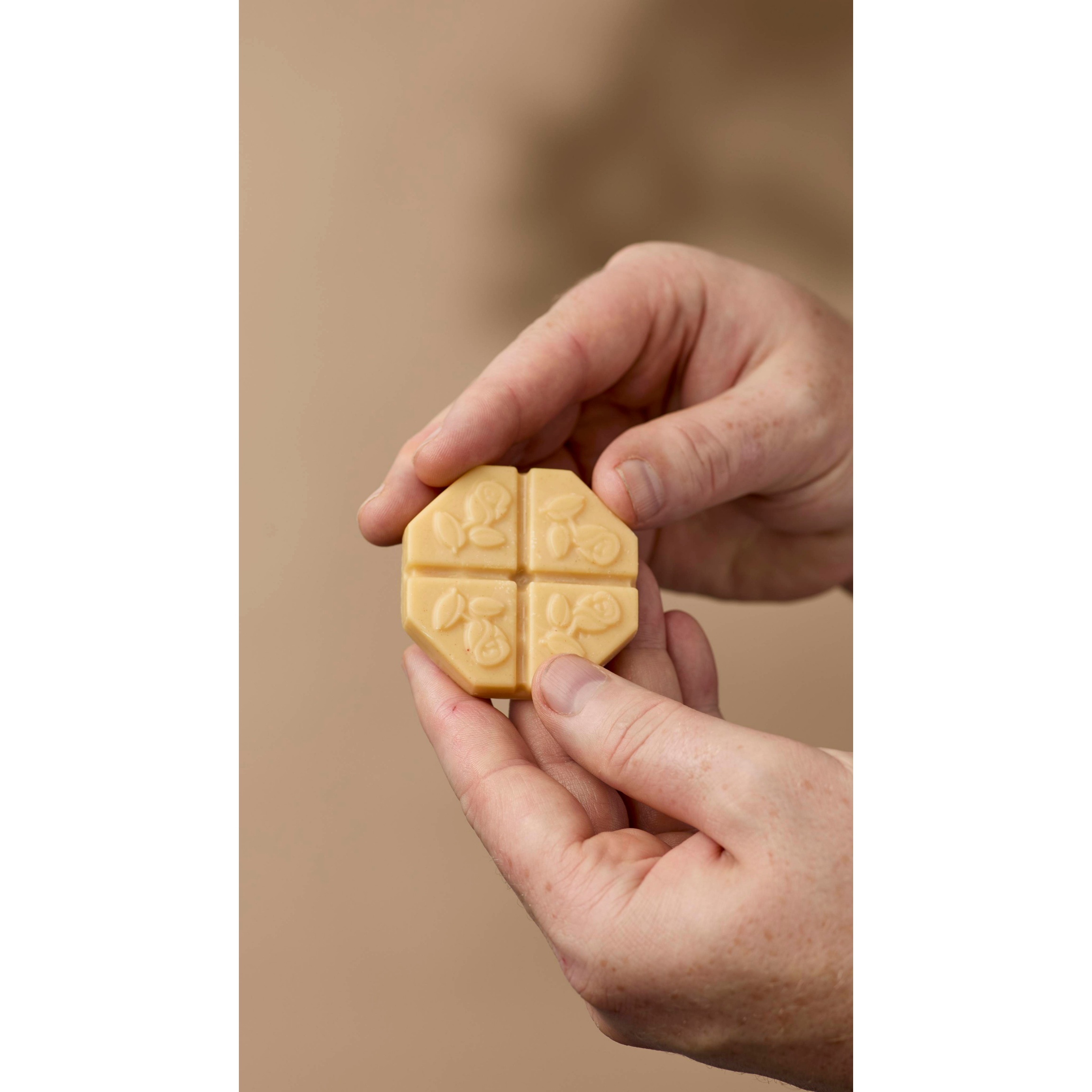 Perfect for night time use, our snappable, new-look, solid face oil is now the perfect shape for a relaxing facial massage. Break off a segment and sweep across the brow bone and up over the cheekbones, allowing the warmth of your skin to gently melt the butters and oils. Work in with clean fingers using upward strokes to encourage a natural glow and promote a lifted look.