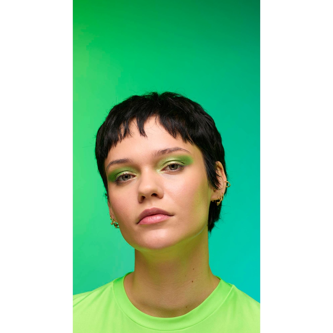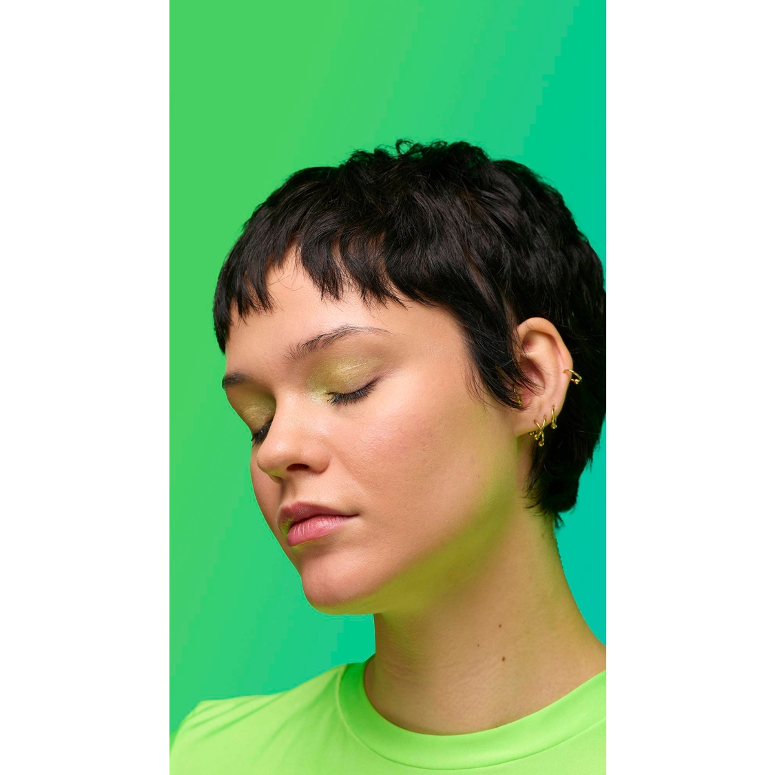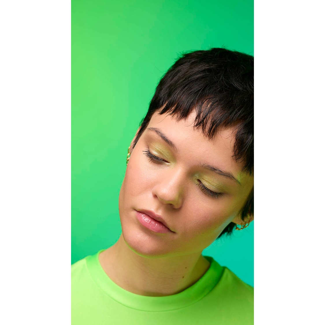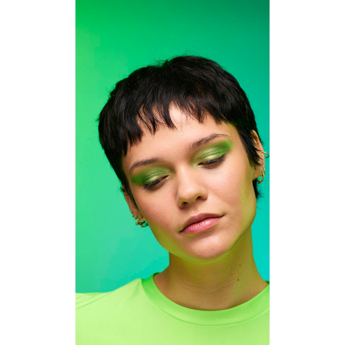 Out with the polished, in with the ethereal; enter your molten muse. A fusion of gold and green lustre creates an iridescent sweep of jade shimmer, with twinkling satin-like glints and crystal-like flecks of sparkle. Why limit the show to your lids? Give those lights a run for their money!
