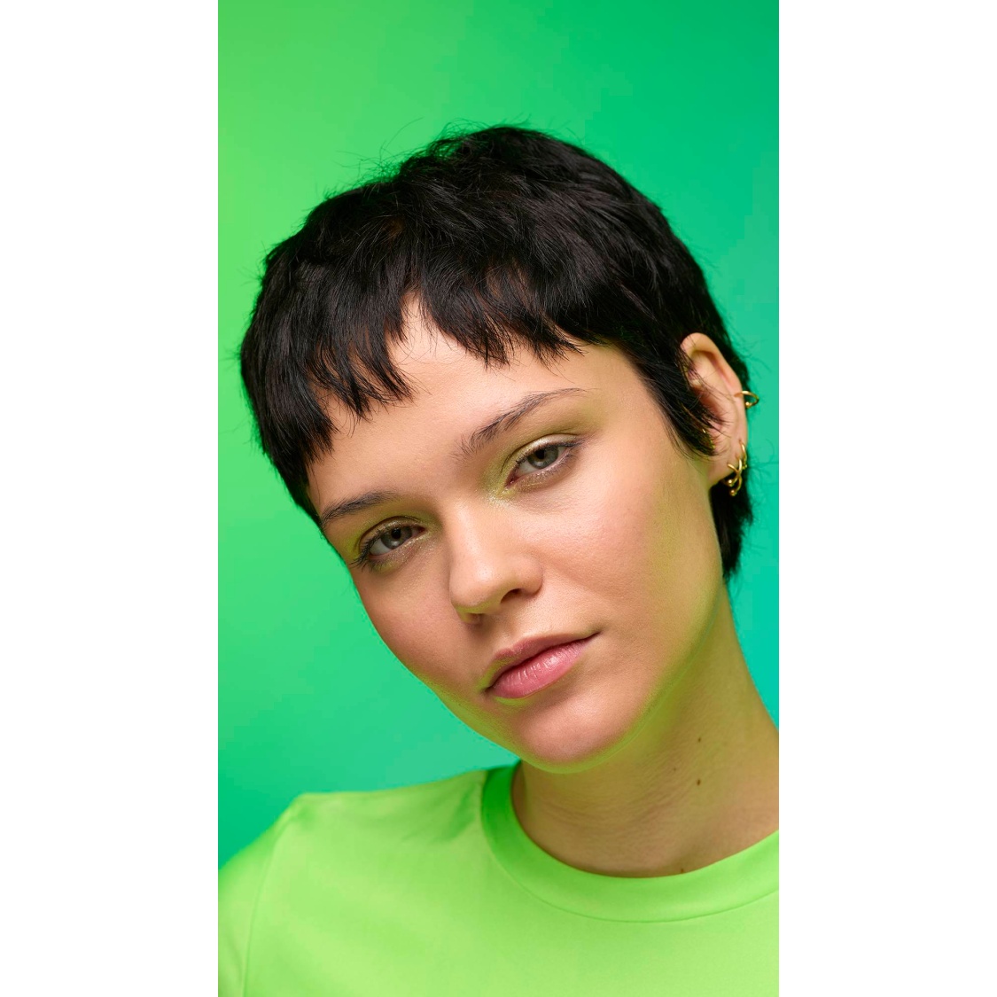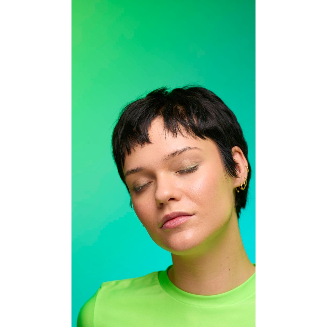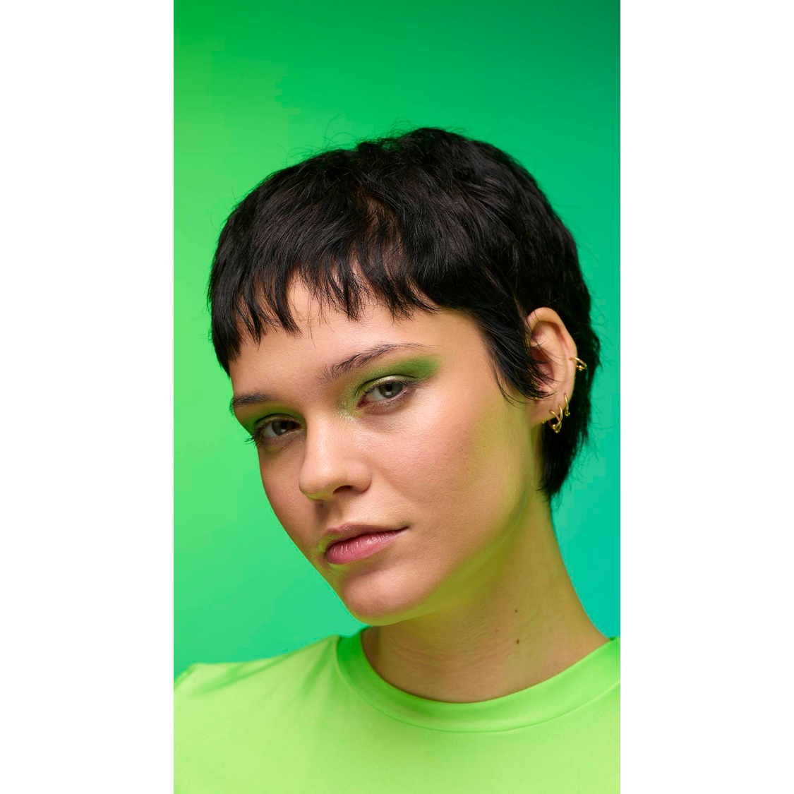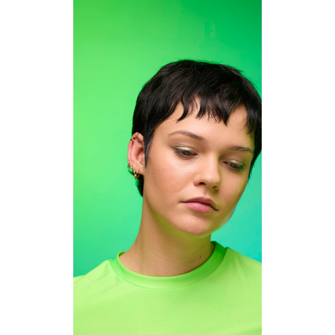 Out with the polished, in with the ethereal; enter your molten muse. A fusion of gold and green lustre creates an iridescent sweep of jade shimmer, with twinkling satin-like glints and crystal-like flecks of sparkle. Why limit the show to your lids? Give those lights a run for their money!