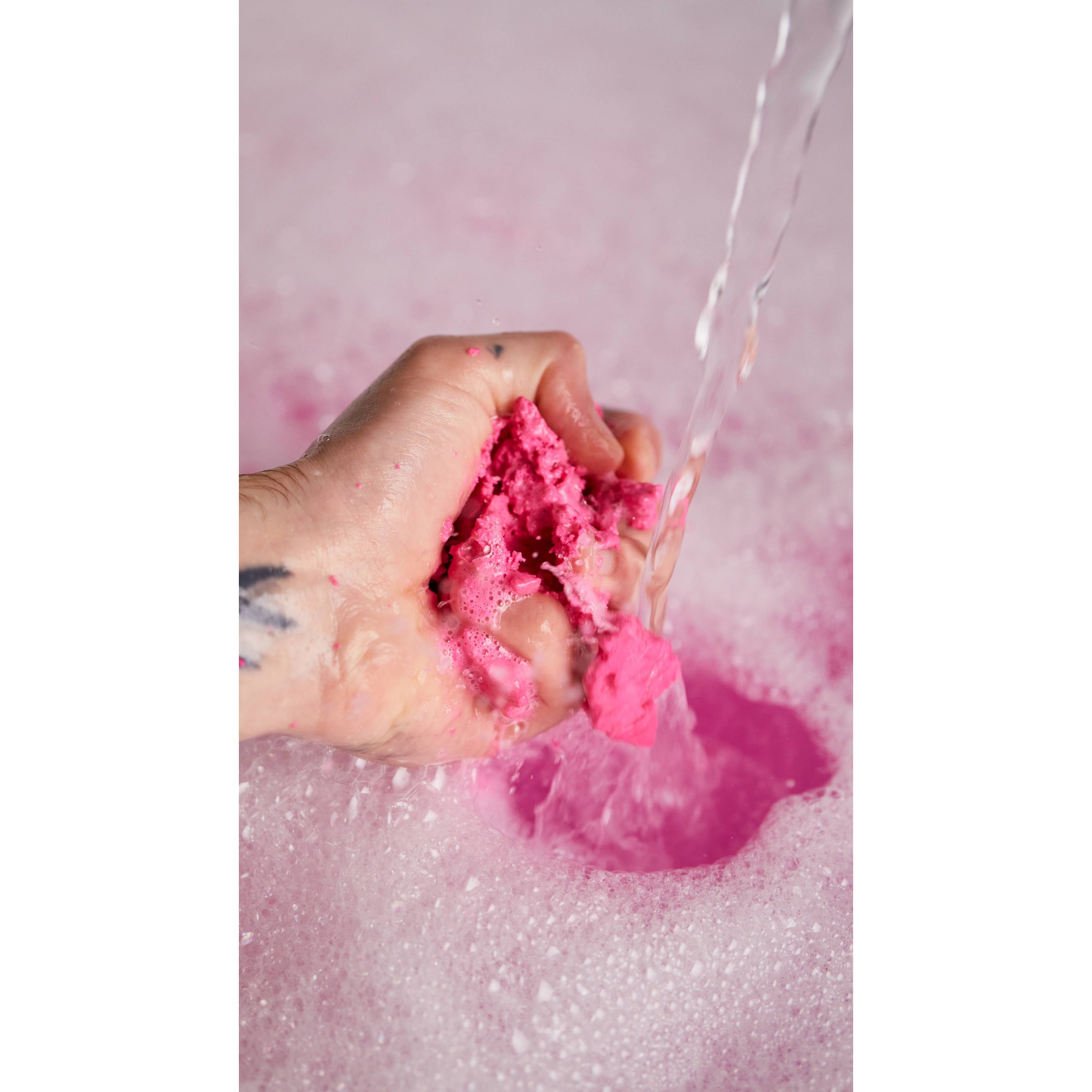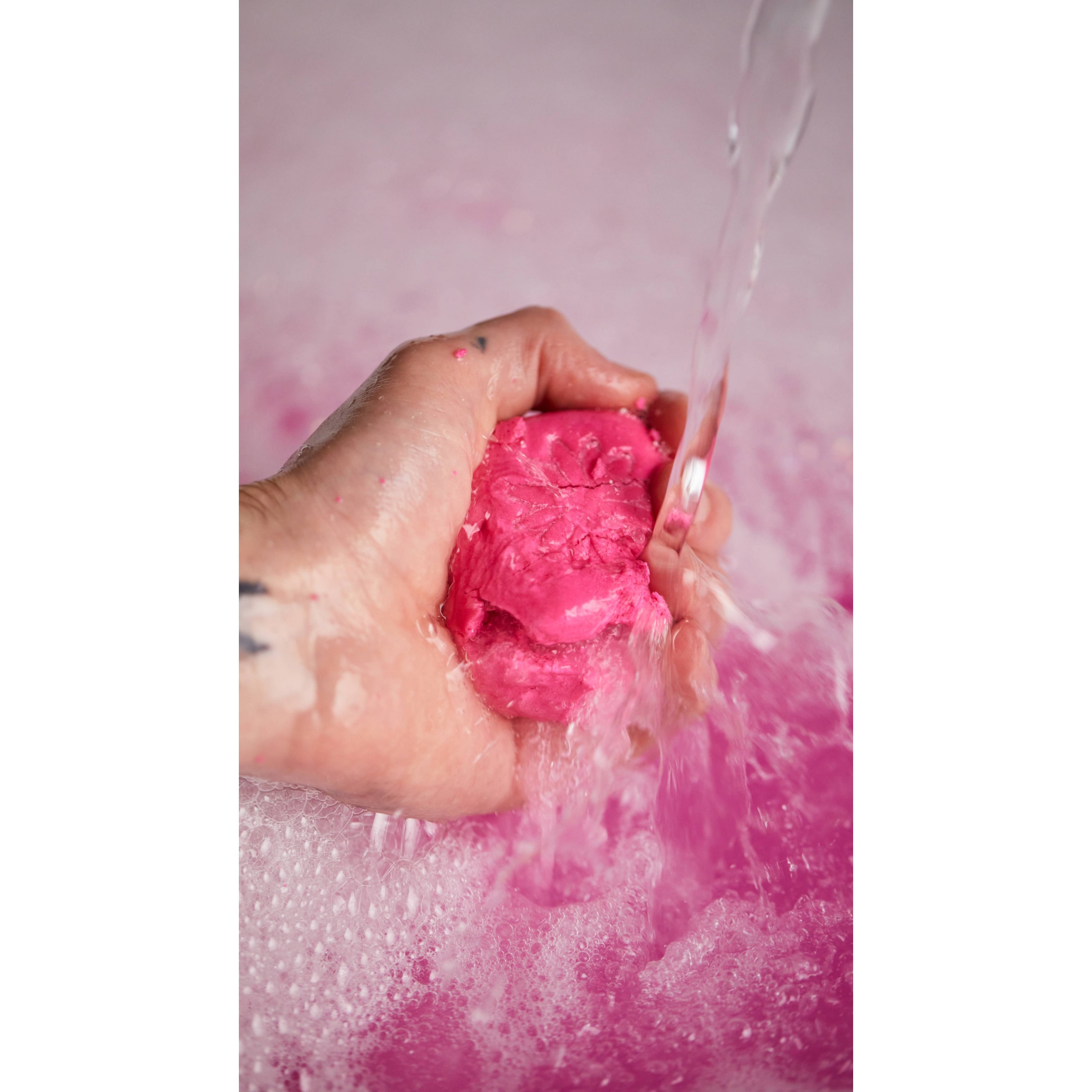 Crumble this delightfully sweet treat under running water for mounds of candy floss bubbles and moisturising pink water.