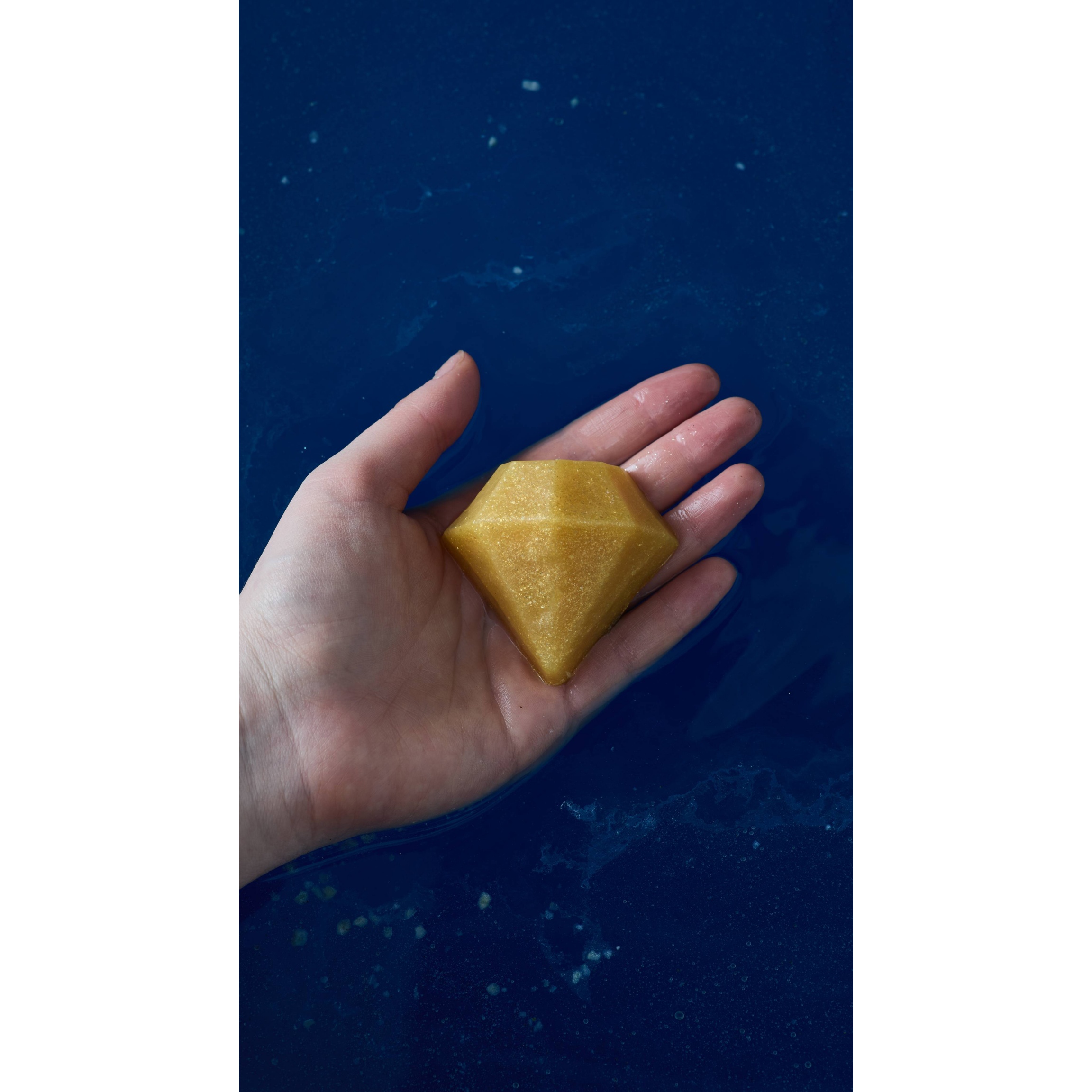 Secretly submerged inside, one of three Gold, Silver, or Green diamond-shaped soaps await, that share the same joy-sparking scent as the bath bomb. Scan all three diamond soaps using Lush Lens in the Lush app and save them in your wallet for future adventures in the Lush Intergalactic Universe.