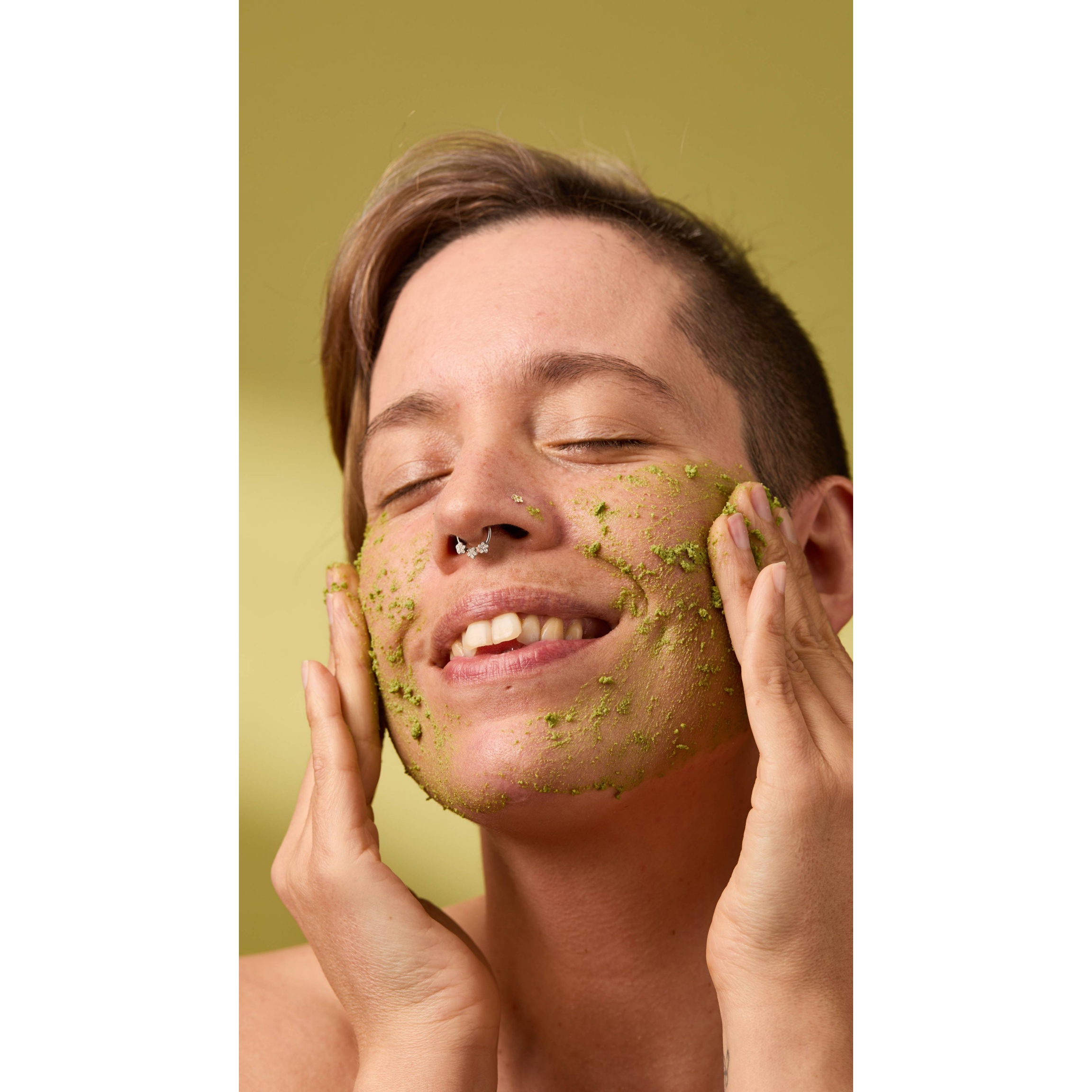 – Hormonal skin needs a gentle touch, which is why we add clarifying rosemary, chamomile blue and sage to a gently scrubby base of ground almonds, rice bran and softening glycerine.