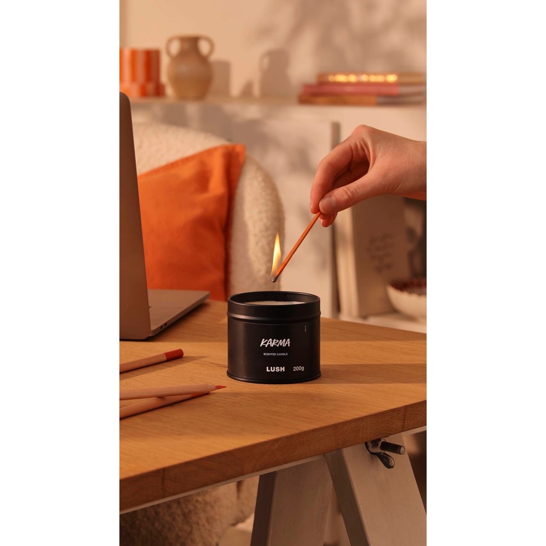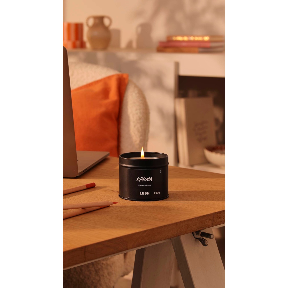 – 100% recyclable or reusable black tin, now with a lid so you can keep the fragrance locked in when the candle isn’t lit.