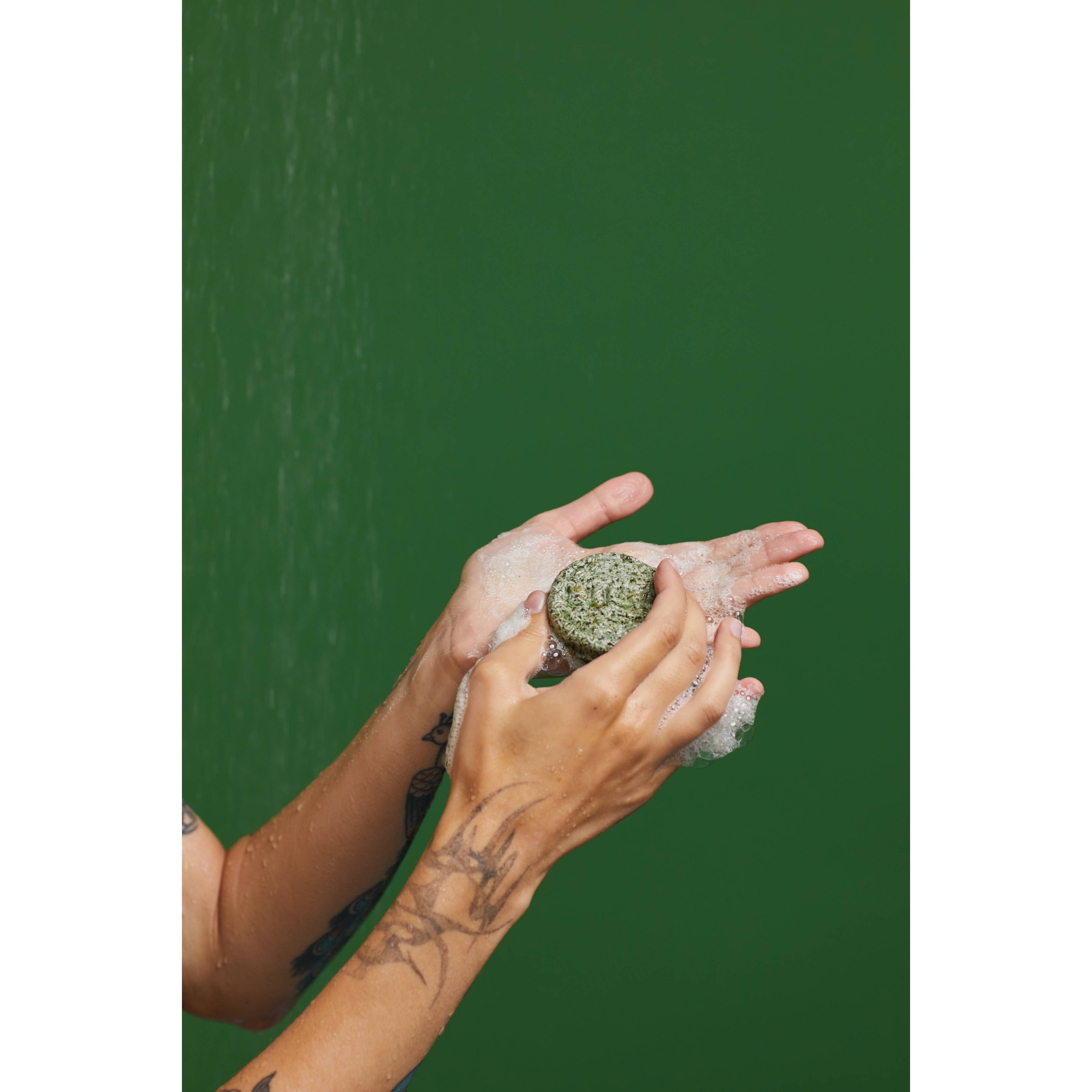 Lather directly onto wet hair or between your hands, rinse and condition as normal.