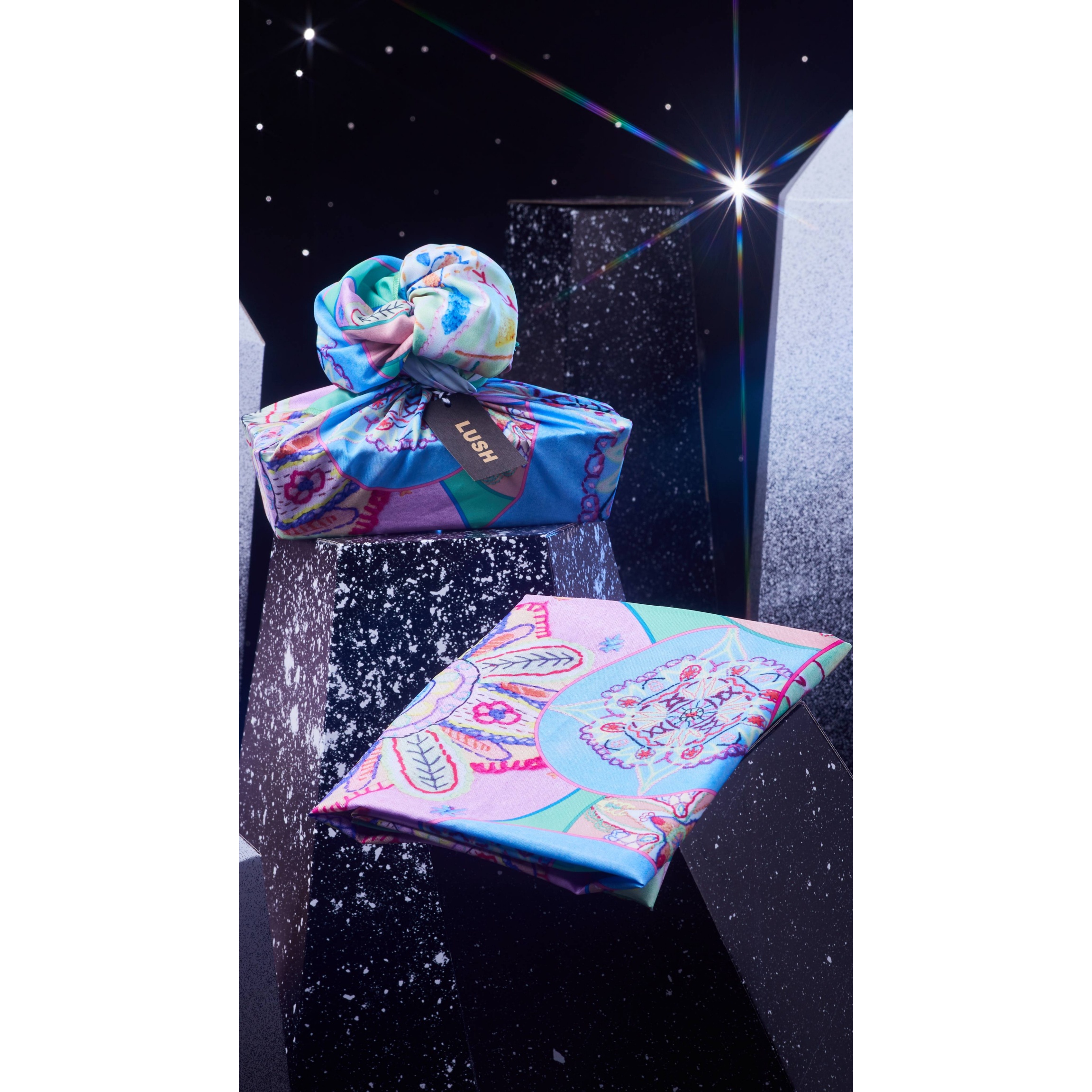 Measuring 100cm x 100cm, this Knot Wrap makes a perfect luxury gift wrap for a huge haul of your favourite Lush products, as well as a wearable scarf or bandana.