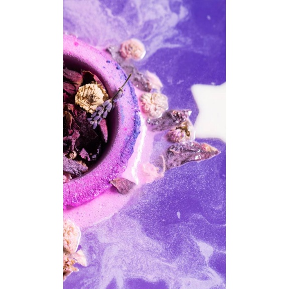 Add your giant bombshell to a filled bath, and as the shell dissolves, sleep-inducing flowers such as lavender and chamomile will be released. The stars and moon will float and glow on the surface. For an extra hit of serenity, turn off the bathroom light as you bathe in a relaxing night sky.